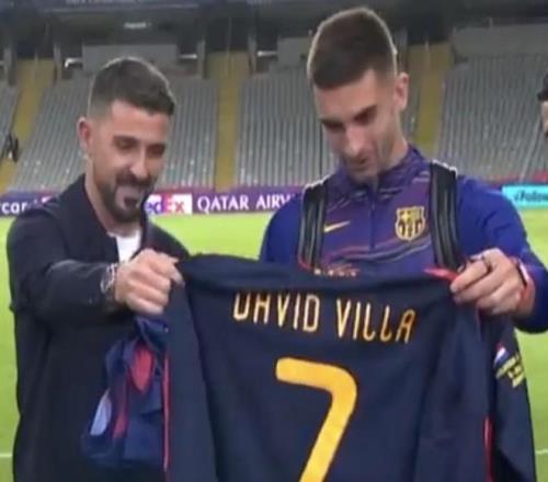 北京时间10月2日,在欧冠对阵巴黎圣日耳曼的激烈较量后,巴萨球员费兰-托雷斯迎来了场外的一个特别瞬间,他收到了一个意义非凡的礼物,那就是西班牙传奇射手比利亚亲手送给他的西班牙2010年世界杯决赛球衣。