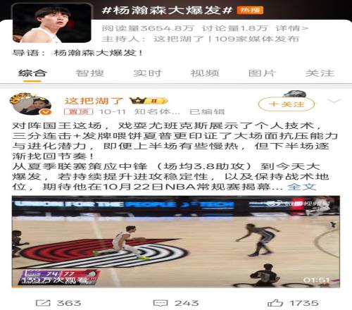 你可以通过微博观看球队训练的幕后花絮,参与球员的线上问答,甚至与其他球迷一起讨论裁判的某个争议判罚。这种参与感和归属感,是传统传播方式无法提供的。而随着王俊杰、张博源、郇斯楠等更多有望进入NBA的中国球员成长起来,NBA的社交距离将离我们越来越近。