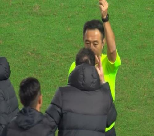 由于不满裁判的判罚,苏亚雷斯第一时间发泄不满。他也因此吃到了黄牌。好在他没有像西海岸队球员张呈栋一样,继续抱怨,否则他很有可能就要吃红牌了!