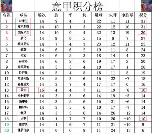 意甲最新积分战报莱切赢保级大战AC米兰那不勒斯国米争榜首